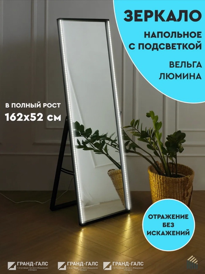 Зеркало напольное Вельга Люмина L, черный с подсветкой